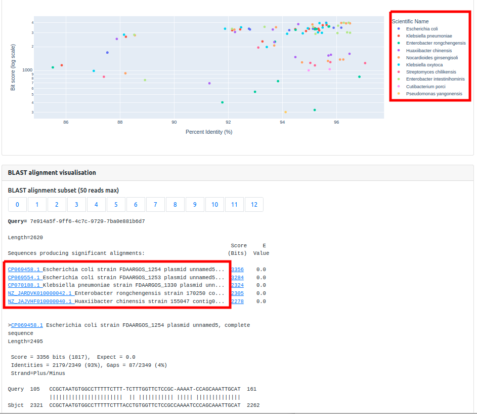 Organism report plasmid subject alignment.