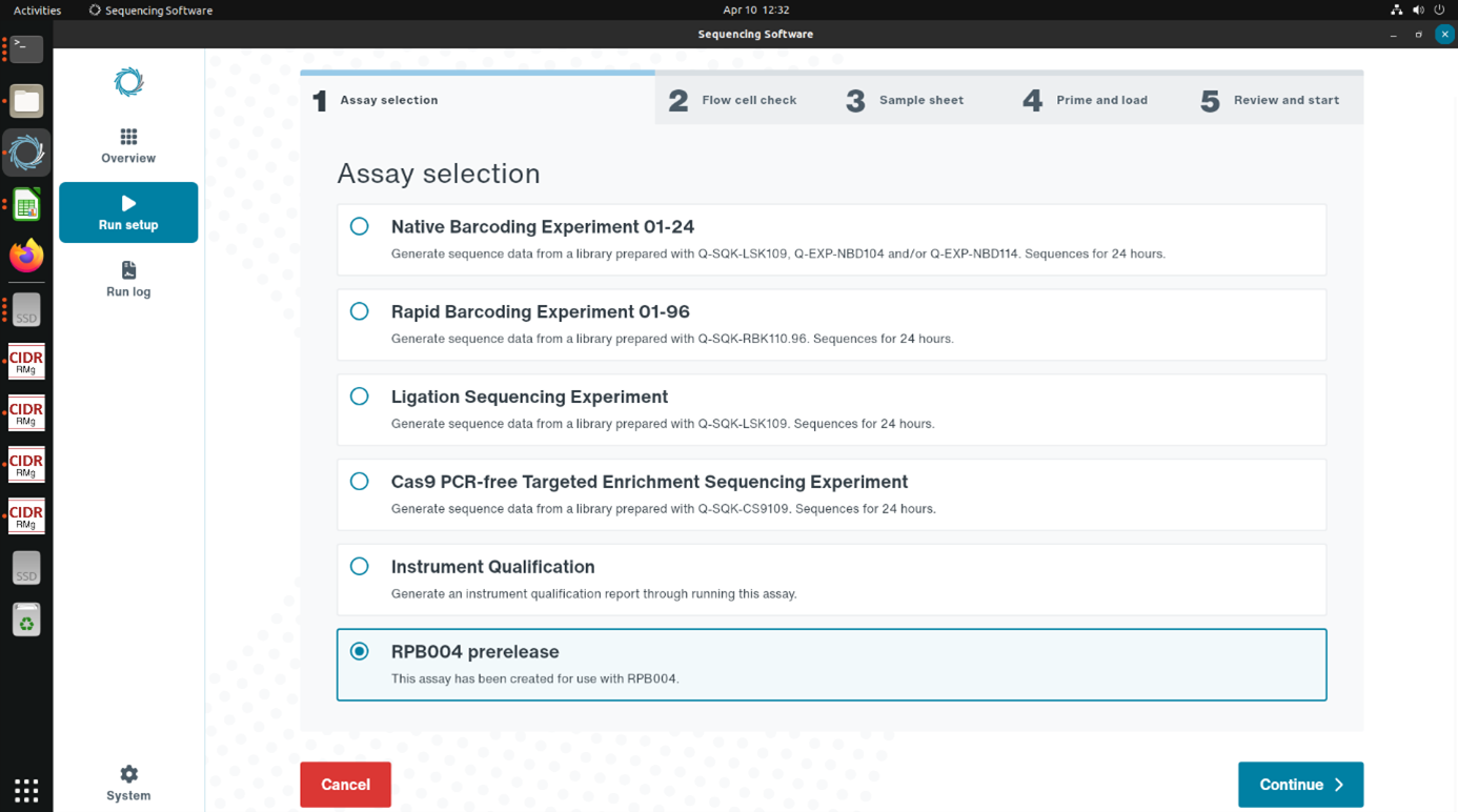 In the ‘Run Setup’ section, select “RPB004 prerelease” and press continue.