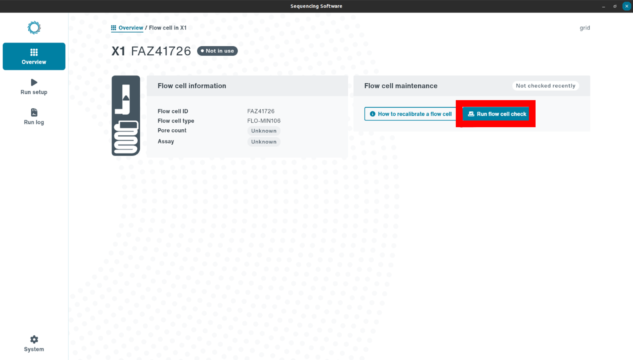 From the flow cell information screen, select ‘Run flow cell check’ on the right-hand side (see Figure 3).