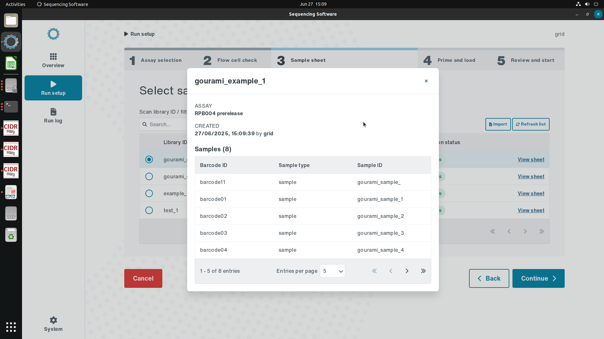 NHS_RMg_platform/sample_sheets/gourami/{yyyy_mm_dd@hh_mm_ss_{Experiment ID}. Validate the entries and click 'Continue'.