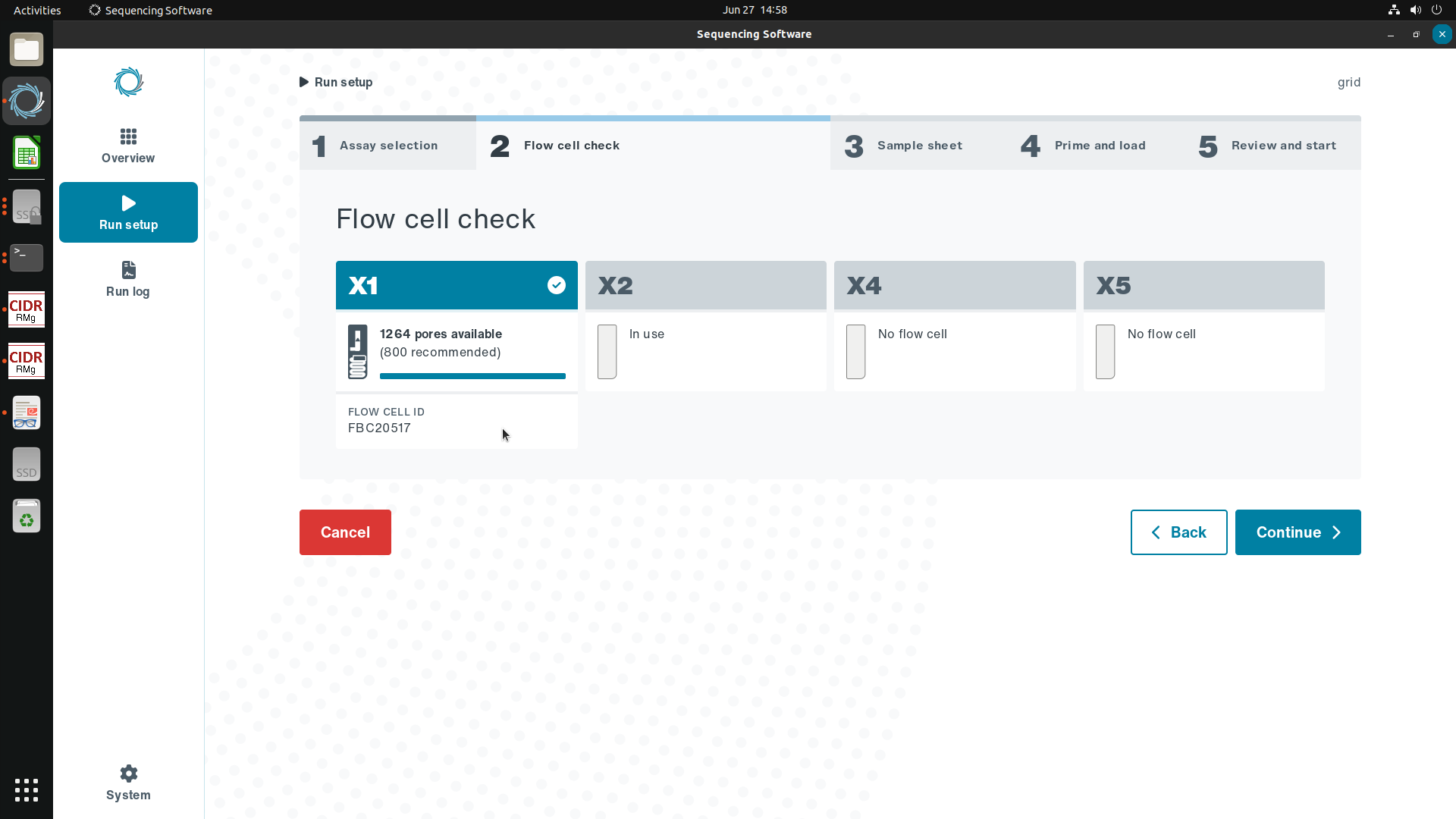 - Select the position of the flow cell intended for the sequencing experiment. A flow cell check will be required if not completed already.
